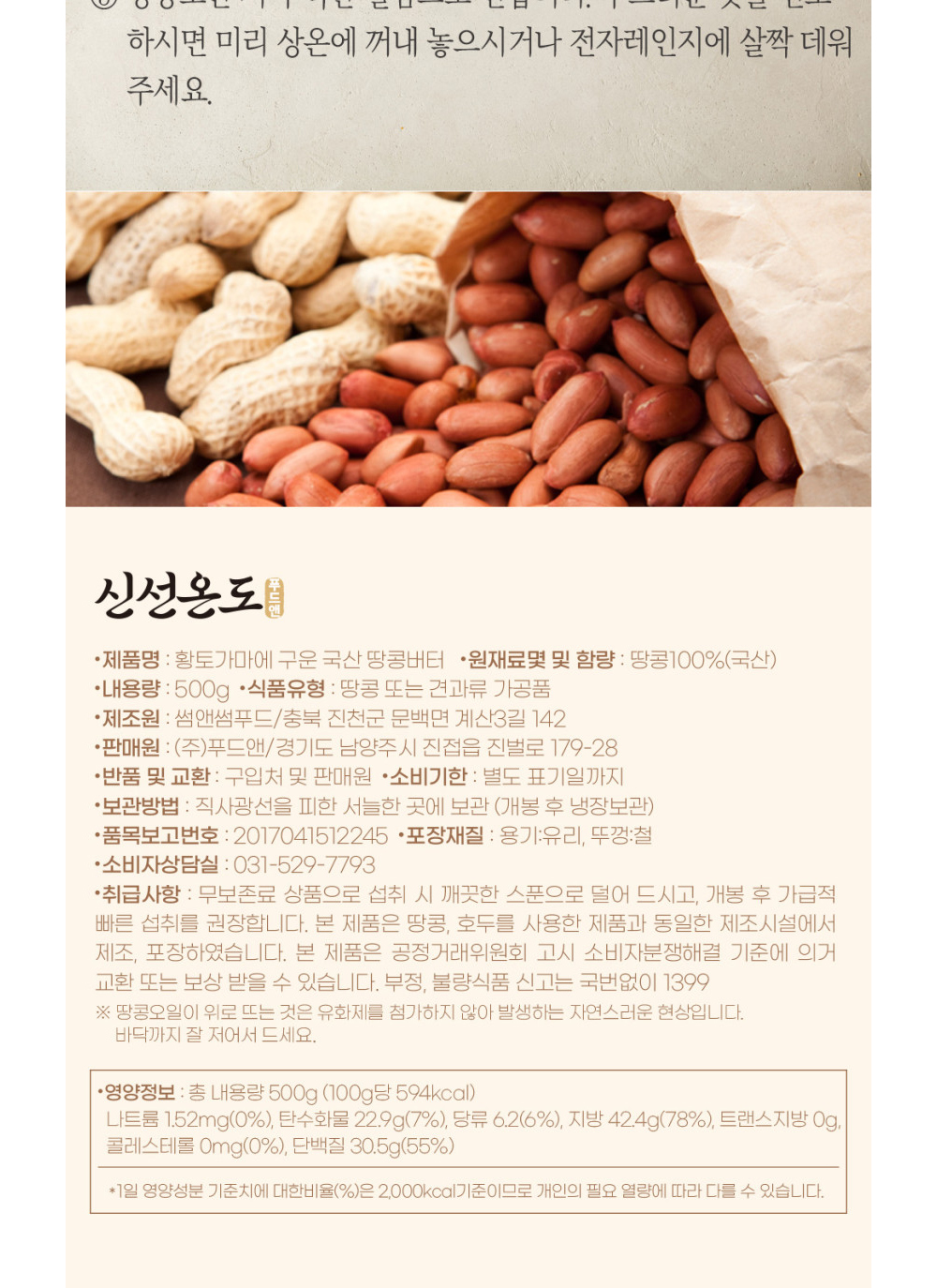 황토가마에 구운 국산 땅콩버터 고소한 풍미가 가득 500g