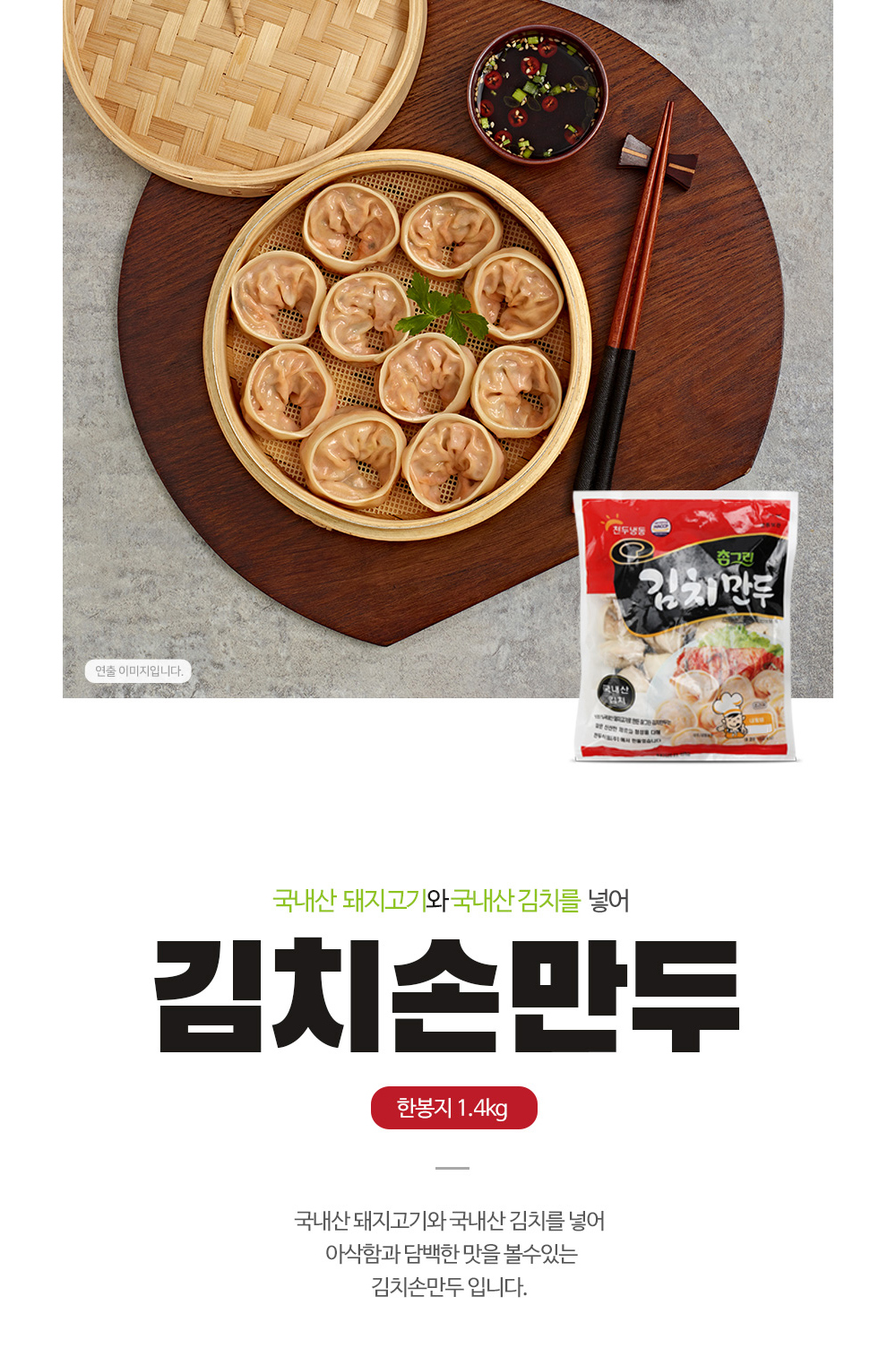 김치 손만두 국내산 돼지고기와 국내산 김치를 넣어 아삭함과 담백한 맛 1.4kg