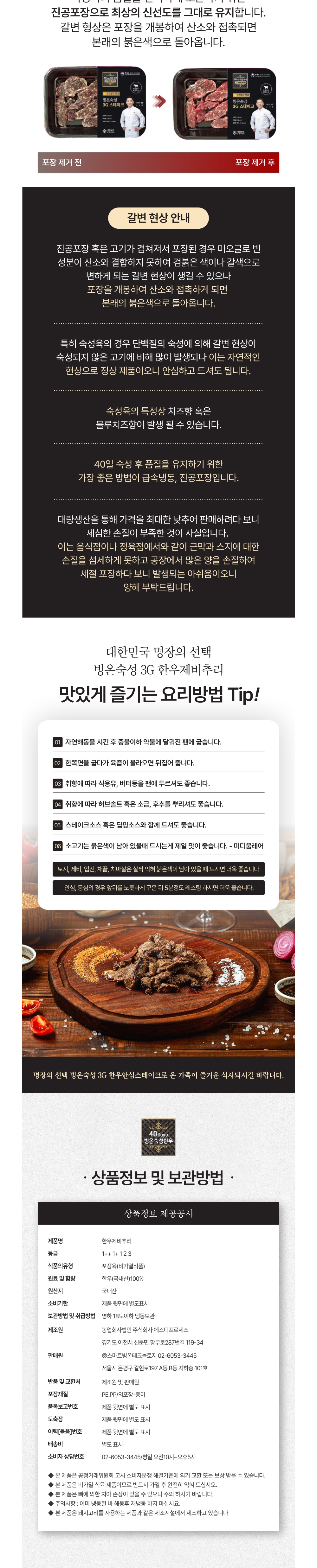 3도씨 빙온숙성 한우 제비추리 부드럽고 지방함량이 적어 담백함 (200g 2팩)