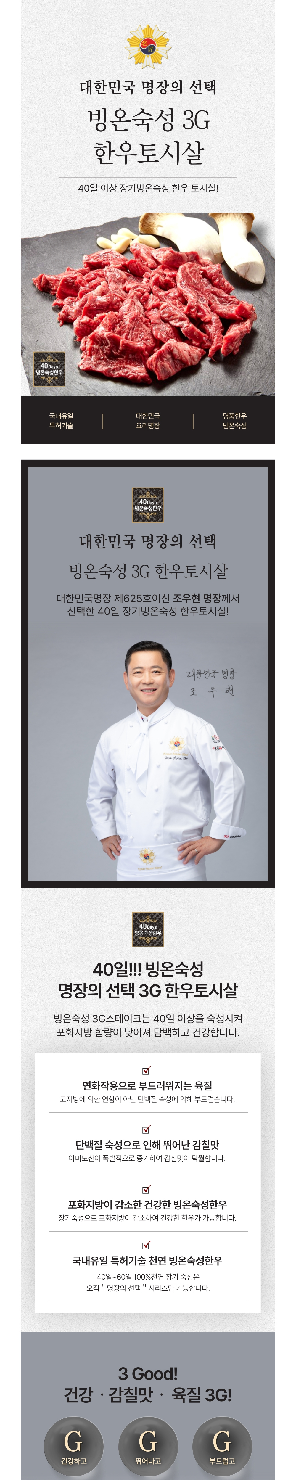 3도씨 빙온숙성 한우 토시살 육향이 강하고 쫄깃쫄깃한 맛 (200g 2팩)