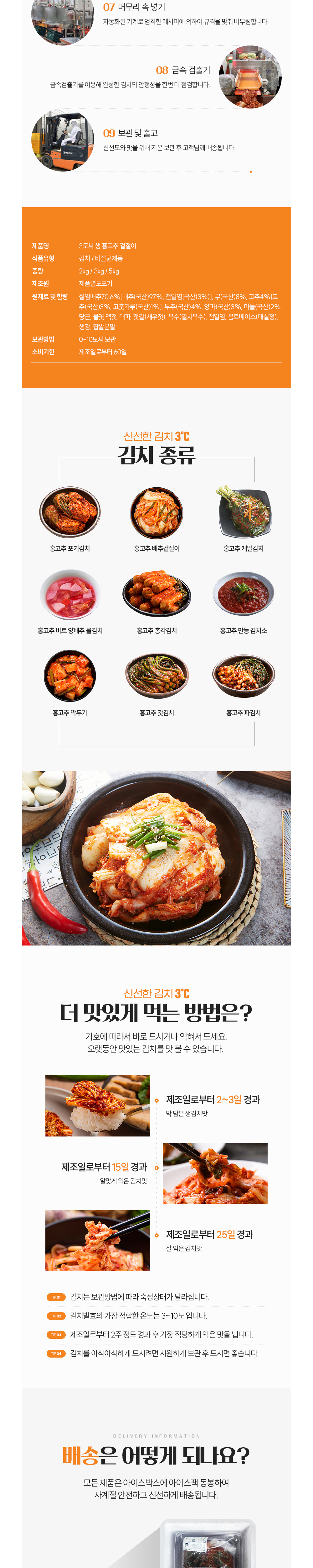 3도씨 겉절이 유명맛집 생홍고추 23가지 양념 100 국산 배추의 고소함과 아삭함(3kg/5kg)