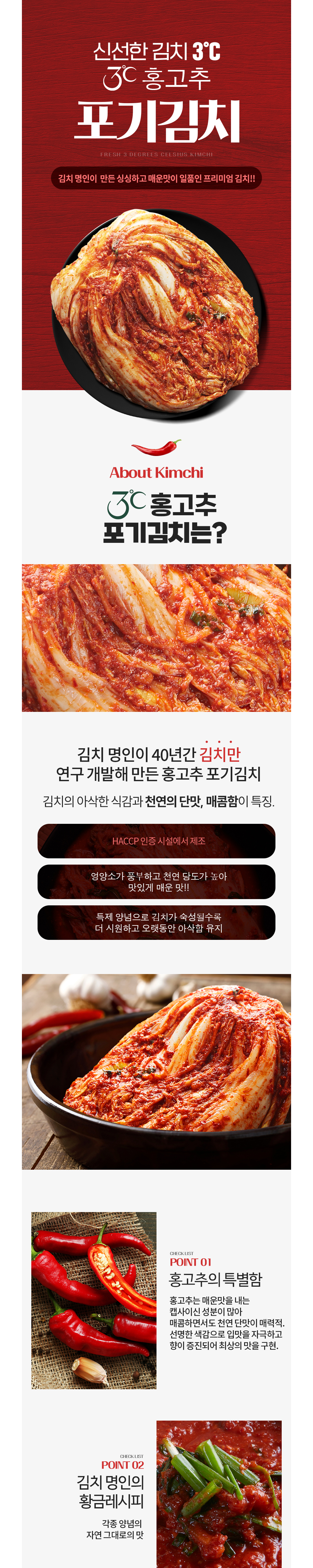 [세계유일] 3도씨 포기김치 생홍고추 23가지 양념으로 더 맛있고 깊은맛 100 국산 (3kg/5kg/10kg)