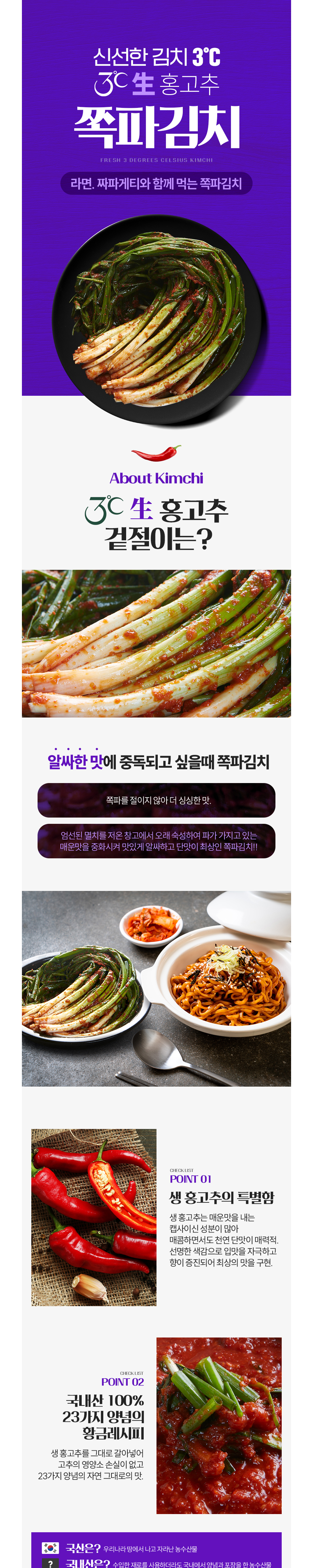 3도씨 쪽파김치 생홍고추 23가지양념 국산100 알싸한 맛에 빠지고 싶을때(2kg/3kg)