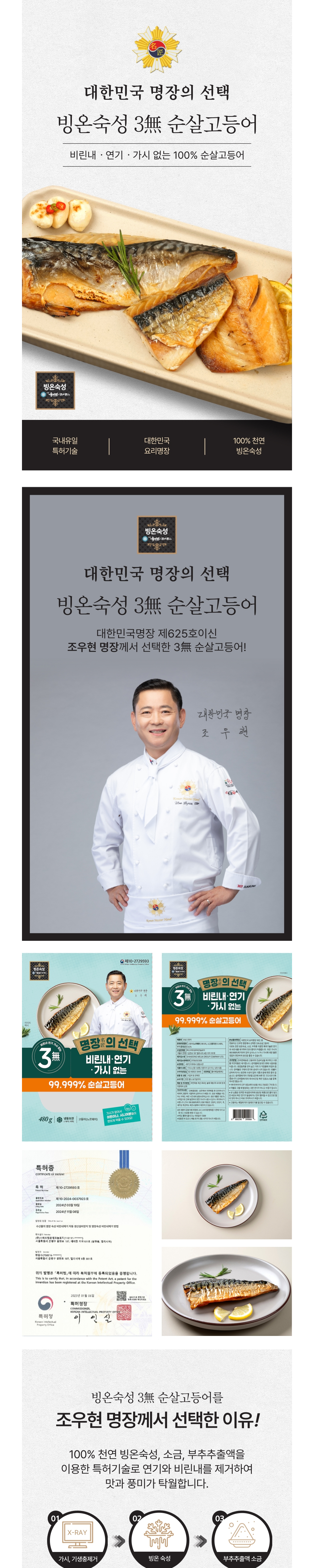 3도씨 빙온숙성 순살 고등어 (3무- 비린내 연기 가시) 명장특허 노르웨이산 (1920g- 4봉) [원산지노르웨이]